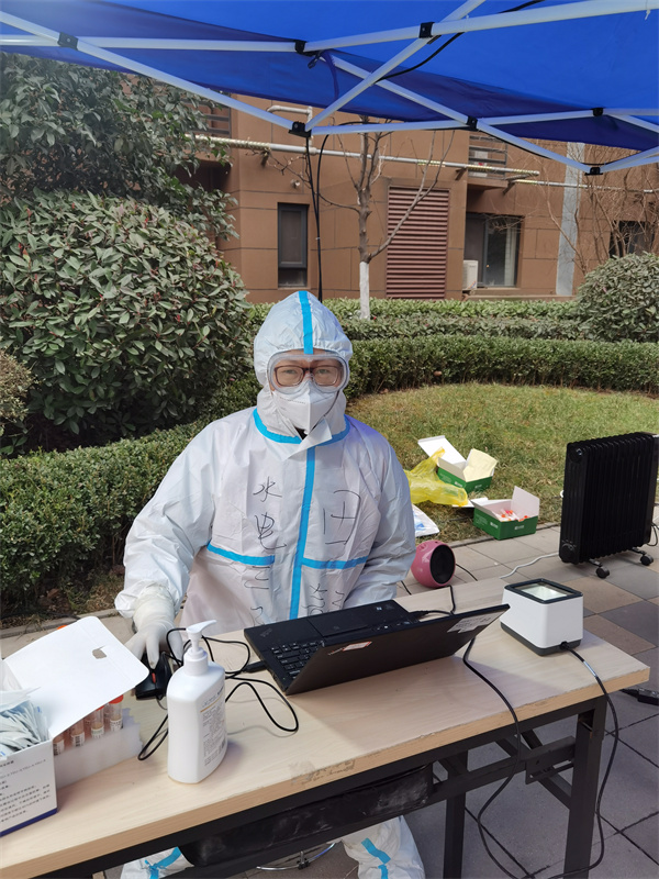 “街坊們,來(lái)來(lái)來(lái)!做核酸檢測(cè),請(qǐng)先到這邊來(lái)登記。”身處經(jīng)開區(qū)的劉璇和向權(quán)在接到公司黨委號(hào)召后,積極申請(qǐng)參與白樺林社區(qū)的抗“疫”志愿服務(wù)。向權(quán)是一位湖南籍的小伙,和劉璇都是單位的青年職工,作為青年情侶抗“疫”志愿者的他們,主動(dòng)為社區(qū)居民提供貼心服務(wù),認(rèn)真做好維護(hù)現(xiàn)場(chǎng)秩序、協(xié)助登記信息、宣傳防疫知識(shí)、排查統(tǒng)計(jì)居民困難等工作,積極充當(dāng)著守門員、宣傳員、信息監(jiān)督員和跑腿員,用青春力量構(gòu)建起一條條保障防線。“疫”路難行,你我同在,兩人在服務(wù)過(guò)程中耐心的勸導(dǎo)、詳細(xì)的詢問(wèn)和解答都得到了小區(qū)居民的一致好評(píng)。“在一次排查獨(dú)居老人困難情況時(shí),碰到一位曾從事水利工程工作的87歲清華畢業(yè)老人,這位老人與我們分享了很多工作事跡。”向權(quán)分享這一幕經(jīng)歷時(shí)他覺得無(wú)比親切與感動(dòng)。