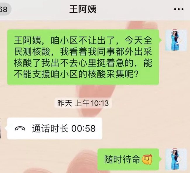 “姐姐,你冷不冷,你手疼不疼?”在排隊的隊伍中,一個小姑娘帶著哭腔問身著防護服的王航英。原來,王航英已經(jīng)連續(xù)采集核酸近十個小時,換班時她脫下手套,想抽一張紙,結(jié)果雙手被凍得通紅,反復(fù)幾次都沒成功。