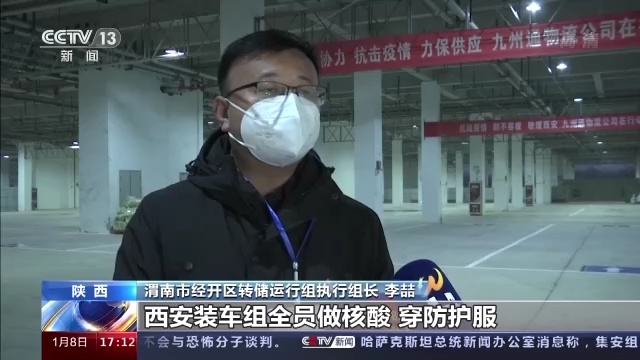 渭南市經(jīng)開區(qū)轉(zhuǎn)儲運(yùn)行組執(zhí)行組長 李喆:專車通道、裝卸組人員是分離的,西安這個裝車組全員做核酸、穿防護(hù)服。西安車輛過來,駕駛員不下車,全程貼封條,24小時不間斷兩班倒。