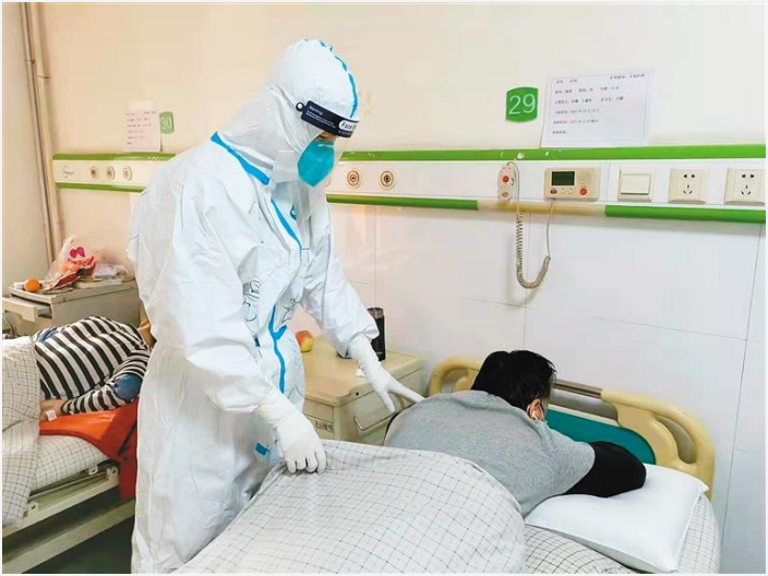 2021年12月27日清晨,再次踏上支援的征途,朱長亮覺得自己背負的責任更重了。“這次是家里的人生病了啊。”想到這,他說自己一刻也坐不住,帶領(lǐng)所有醫(yī)護人員帶著行李箱直奔定點醫(yī)院。到醫(yī)院后他用了兩個小時熟悉醫(yī)院流程,當日下午就和隊員們正式進入病區(qū)開始了救治工作。