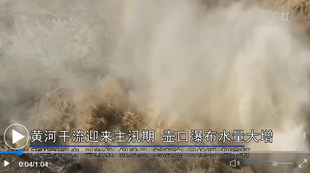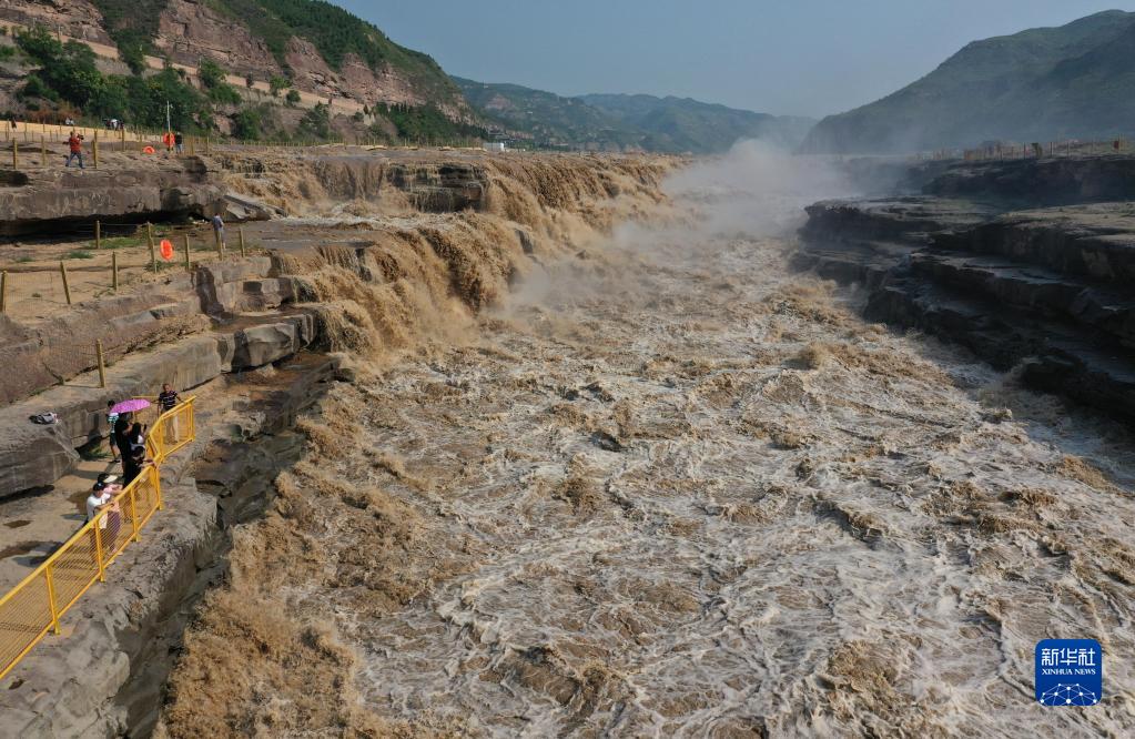 受近期上游降雨增多和萬家寨水庫調(diào)節(jié)放水影響,黃河干流進入主汛期,位于晉陜兩省交界的黃河壺口瀑布水量大增。