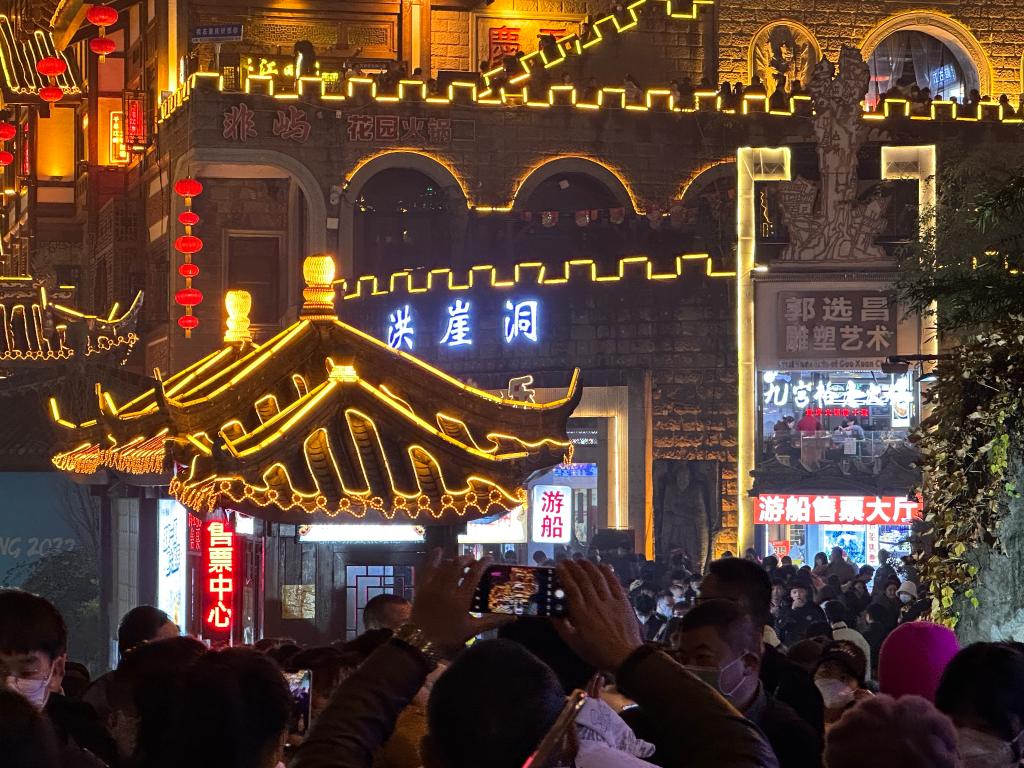 重慶洪崖洞民俗風(fēng)貌區(qū)重現(xiàn)歡鬧,“店鋪營業(yè)額同比增長20%。”一家火鍋店店主陳大江說;重慶老街山城巷,紅燈籠照亮青石與黛瓦,人們?cè)诖蚩ǖ嘏抨?duì)拍照。“這里古色古香,又融入現(xiàn)代時(shí)尚元素,很有氛圍!”游客秦藝說。