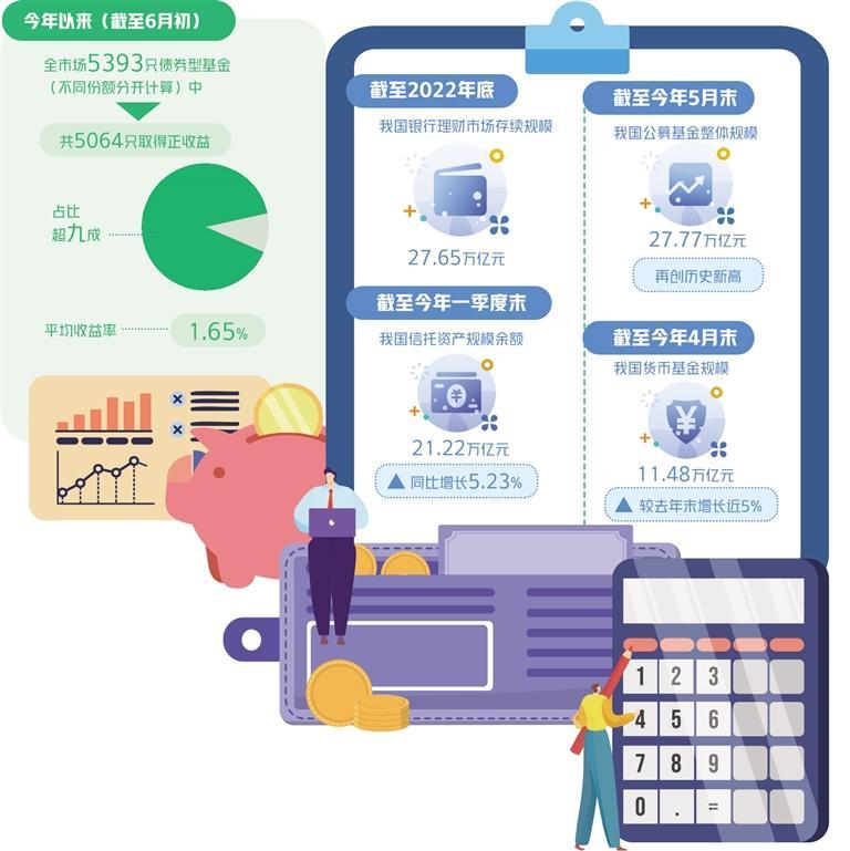 除上述兩類理財(cái)產(chǎn)品之外,公募基金也是投資者較為關(guān)注的一類理財(cái)產(chǎn)品。中國(guó)基金業(yè)協(xié)會(huì)公布的數(shù)據(jù)顯示,截至今年5月末,公募基金整體規(guī)模達(dá)27.77萬(wàn)億元,再創(chuàng)歷史新高。