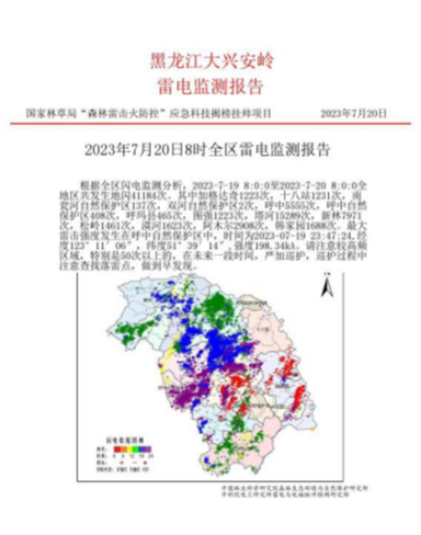 入夏以后,大興安嶺林區(qū)持續(xù)干旱少雨,日平均氣溫突破20℃,部分地區(qū)出現(xiàn)35℃以上高溫;大部地區(qū)降水偏少,加之強對流天氣高發(fā),雷電活動頻繁,2023年7月6日0時至8月6日22時,黑龍江大興安嶺發(fā)生地閃122845次,內蒙古大興安嶺發(fā)生地閃91585次;2022年同期,黑龍江大興安嶺發(fā)生地閃95845次,內蒙古大興安嶺發(fā)生地閃85124次。2023年雷電明顯偏多,特別是北部高緯度林區(qū),高山植被偃松林含水率低、含油率高,發(fā)生雷擊后極易燃燒。