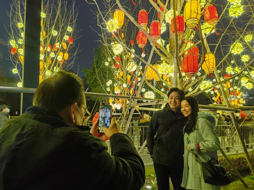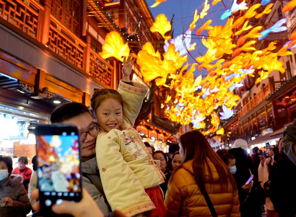 2023年12月31日,新加坡游客在上海龍華廣場(chǎng)拍照留影。新華社記者 陳愛平 攝