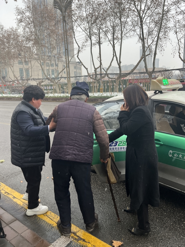 1月15日上午9:30,一位老人來到咸陽市政務(wù)服務(wù)中心要找民政局,由于老人年齡大且耳背,且為外地方言無法進(jìn)行正常溝通,咨詢引導(dǎo)崗工作人員王佩、張伉拿出A4紙問一句寫一句,又在老人隨身攜帶物品中找到了老人身份證、老年證、老年手機(jī),但手機(jī)已欠費,且電話簿為空,工作人員王佩又在老人手機(jī)通話記錄查找有無最近撥出和接聽的電話,終于找到了最近撥出頻次較高的聯(lián)系電話,但對方稱不認(rèn)識,接連又撥打了其他兩個電話,1個無人接聽,1個稱和老人是同村村民,村民又聯(lián)系到村書記,就這樣溝通、查找、聯(lián)系,撥打了十幾通電話,村書記告知我們其家人就在來的路上,考慮到大雪路滑,天氣寒冷,政務(wù)中心工作人員安排老人在大廳休息,幫老人倒上了熱水,叮囑老人耐心等待。直至下午15:10,家人一直未來政務(wù)大廳。政務(wù)中心工作人員繼續(xù)聯(lián)系到村書記,確定老人家里位置后,聯(lián)系出租車將老人扶上車,一路上政務(wù)中心工作人員多次和出租車司機(jī)電話聯(lián)系,直到知道村干部已將老人安全送回家,這才放下心來。