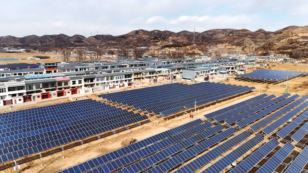 這是位于陜西省米脂縣井家畔村的光伏電站(無人機(jī)照片,2024年3月1日攝)。新華社記者 鄒競(jìng)一 攝