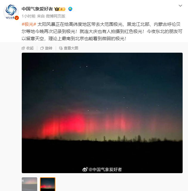 北京拍到極光了