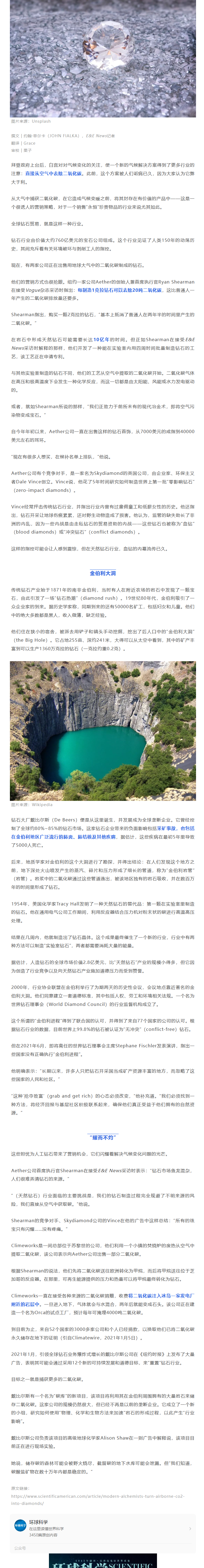 20噸二氧化碳可做成1克拉鉆石